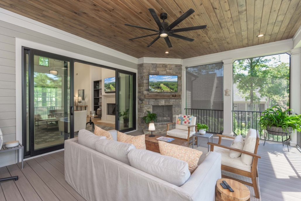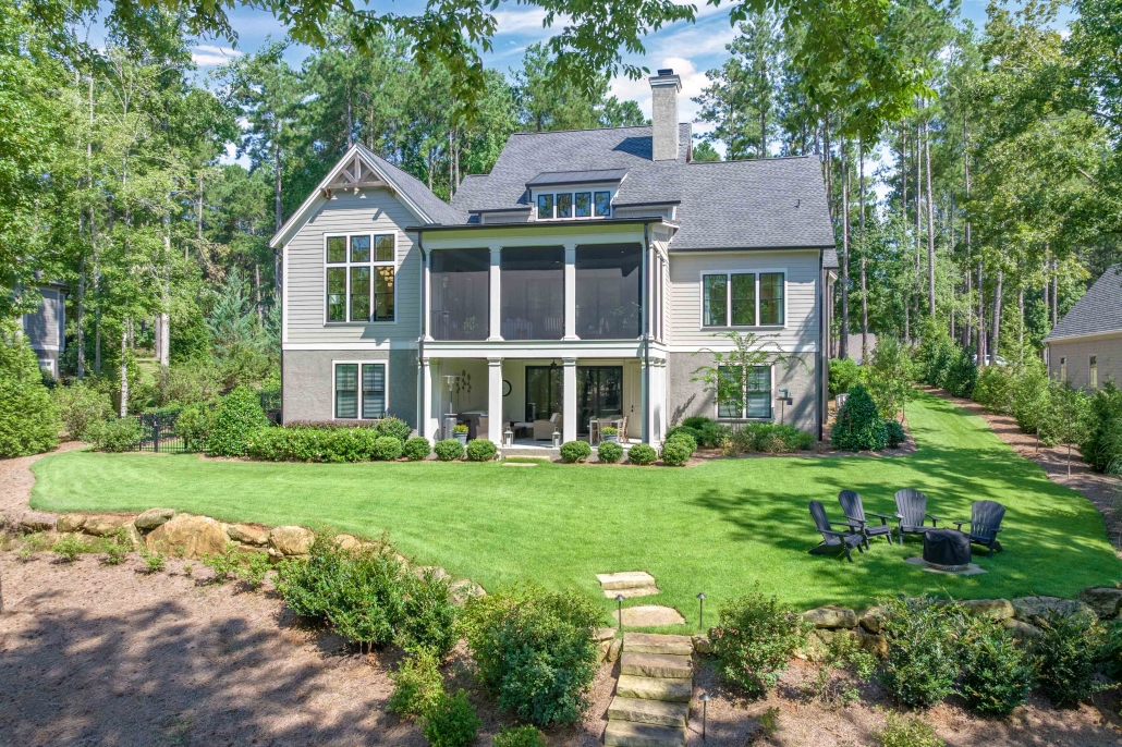 Outdoor living is enhanced by a screened porch and fireplace, grilling deck and picturesque pond views. Send me more about this home in Reynolds Lake Oconee!