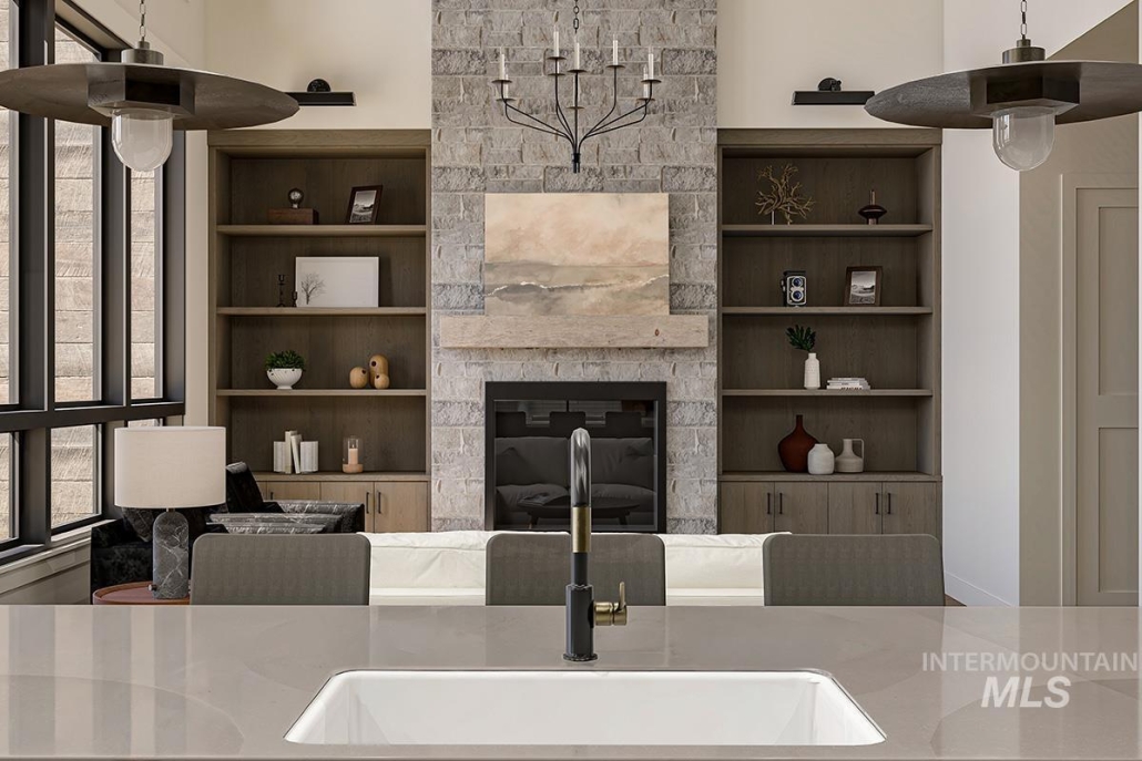Enjoy an open floor plan, floor to ceiling fireplace.